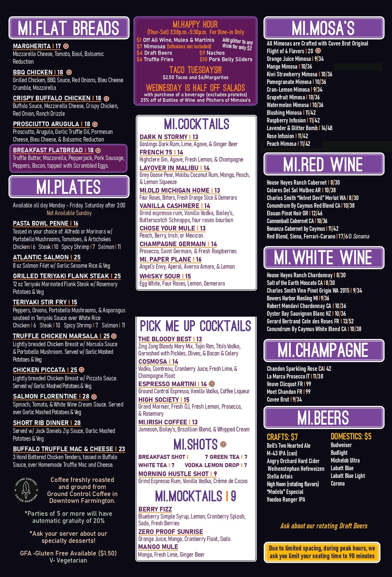 Our MI.Mosa menu features local, fresh Michigan products, where prohibition and arts, meet culinary imagination. We’ve hired culinary students and restaurant professionals who are looking to expose their true identity in the kitchen. Each of our unique dishes has a story.